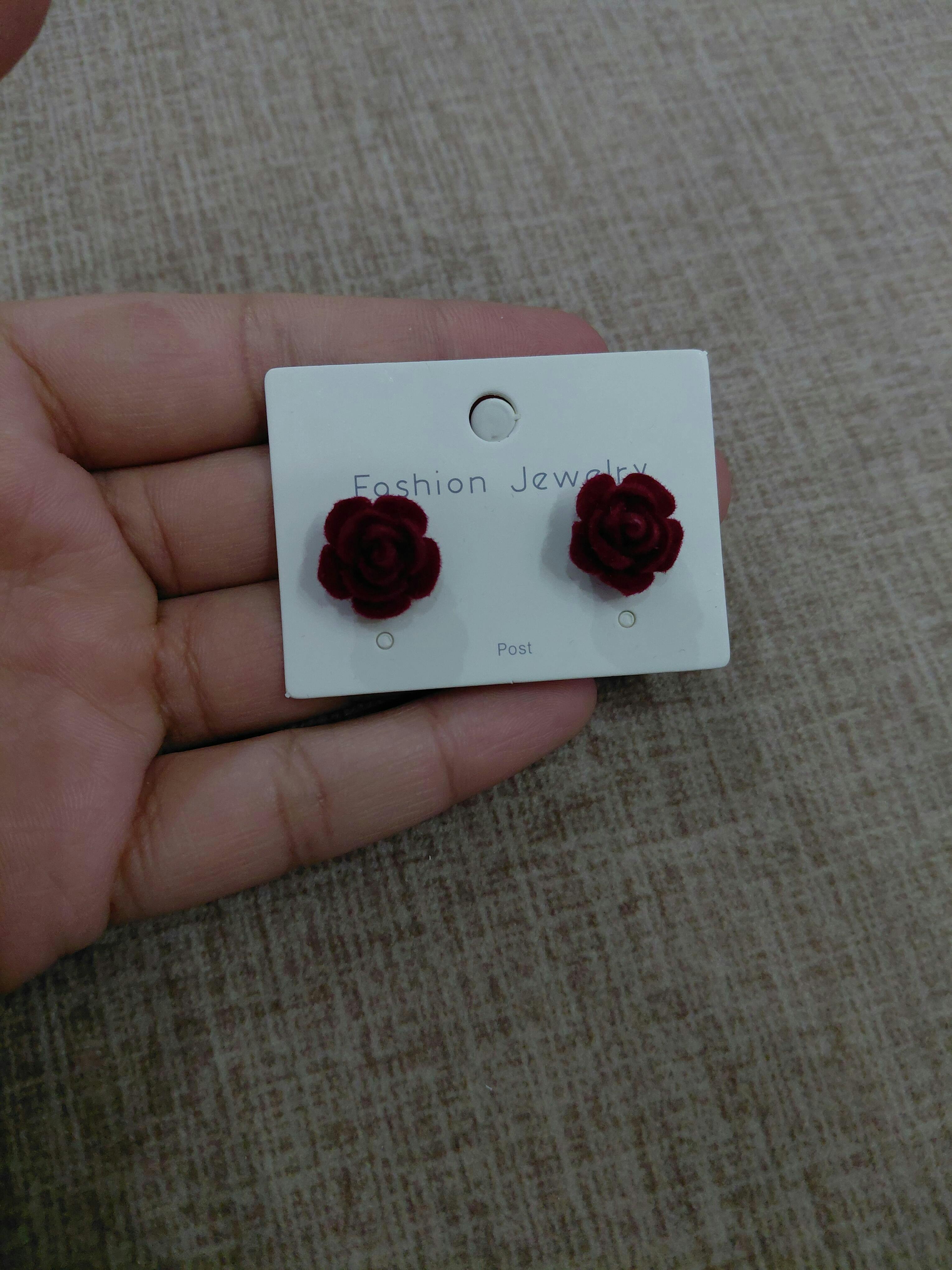 CETH689 YYZ Painted Black T...CETH461 ZHL Velvet Red Rose Mini Stud Ear Tops Pair - CETH